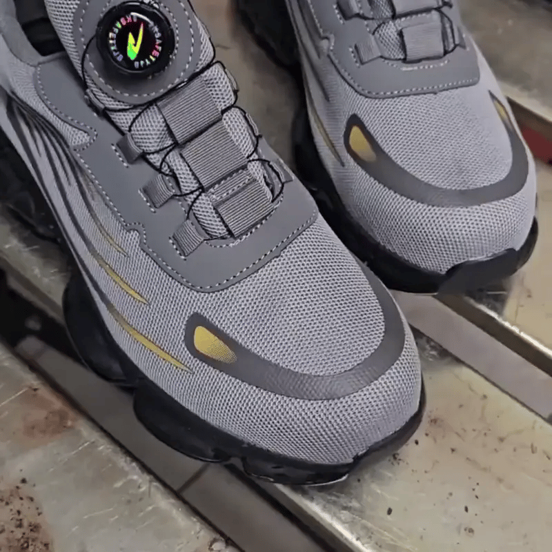 Die Schuhe sind 45 % leichter als herkömmliche Arbeitsschuhe und fühlen sich so bequem an wie Sneaker – mit voller Stahlkappen- und Kevlar-Sicherheit.